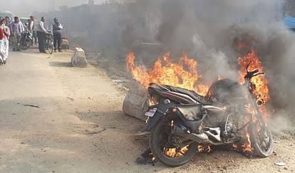 शॉर्ट-सर्किट के कारण बाइक में लगी आग हताहत नहीं।। SATYA MEDIA DARPAN